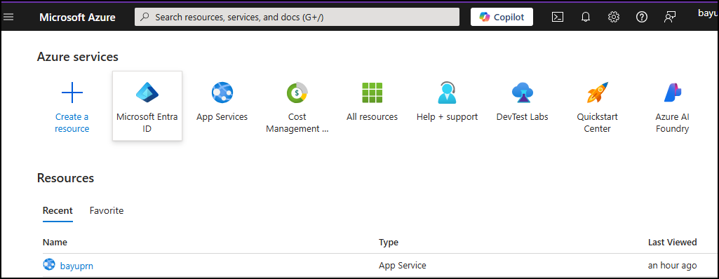 - Pada dashboard Portal Azure, pilih Microsoft Entra ID (Dulu namanya adalah Azure AD/Azure Active Directory)