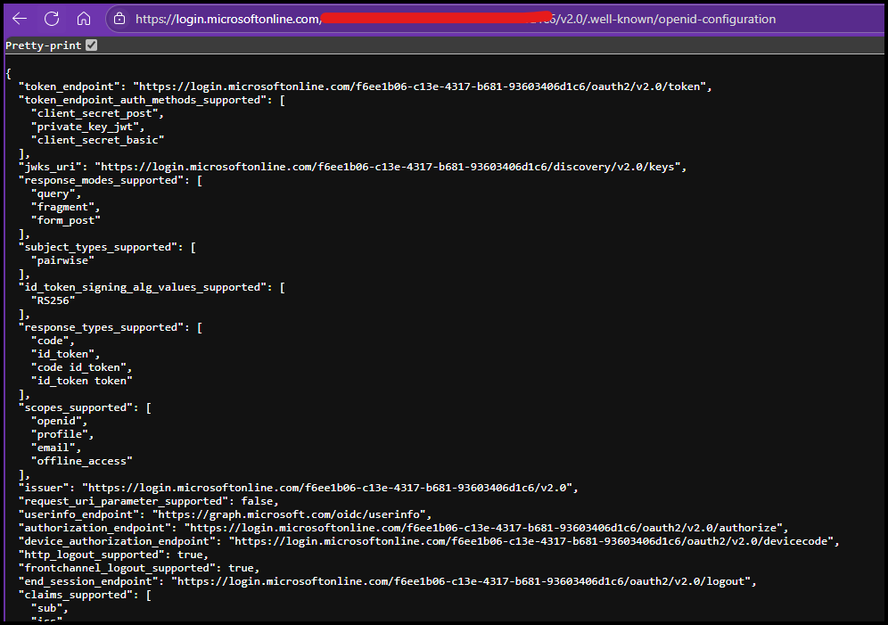 - Buka URL metadata document tersebut untuk memastikan bisa diakses